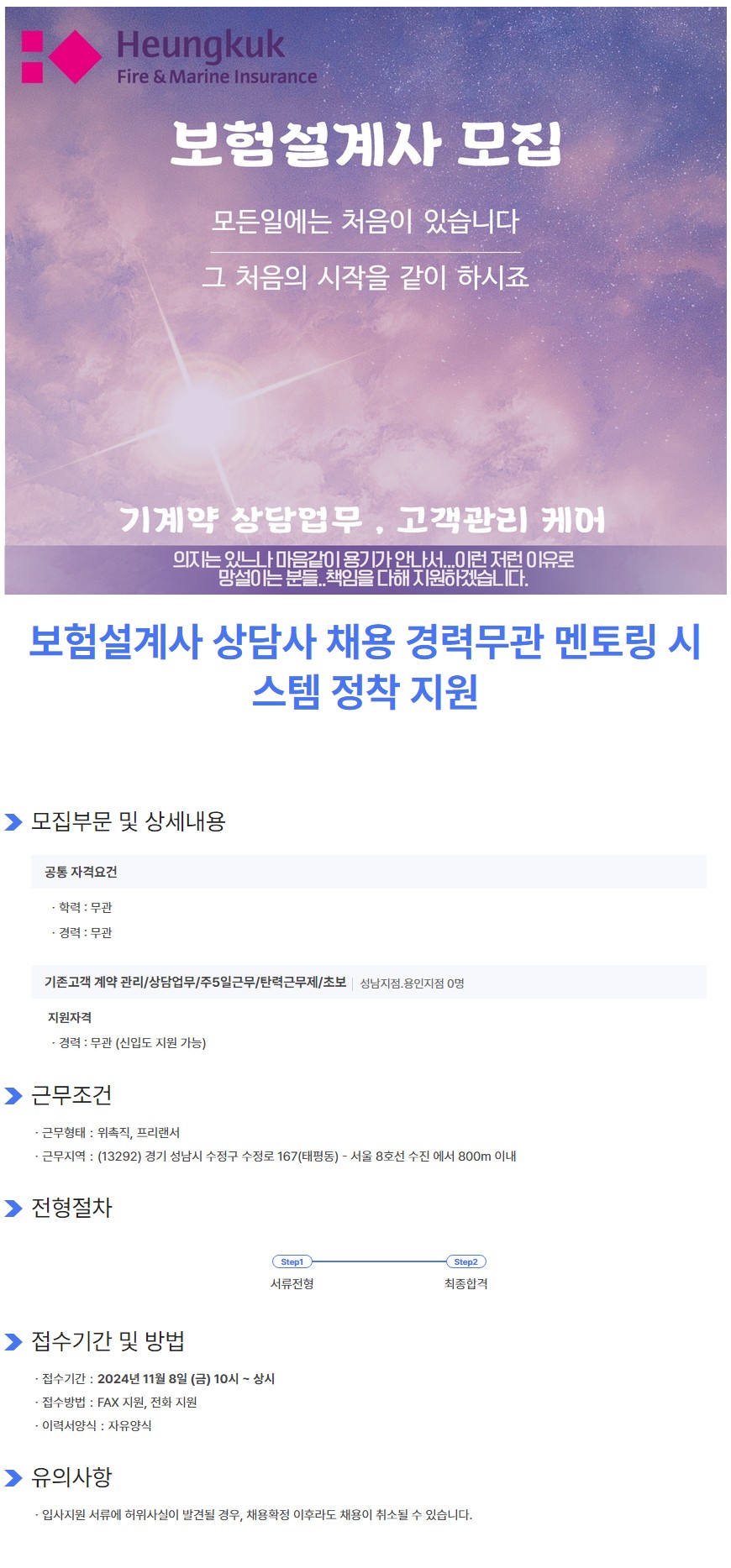 #경력무관 #멘토링 #정착지원시스템 #장율복장 #야근없음 #연령구성다양 #학력미달 지원가능