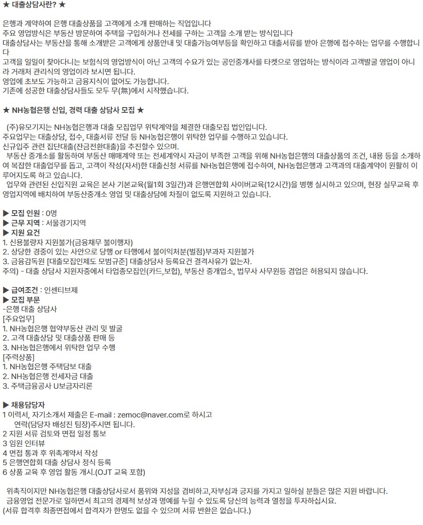 #인센티브 #NH농협은행 #경제적 보상 #겸업 불가 #위촉근무 #능력 #열정