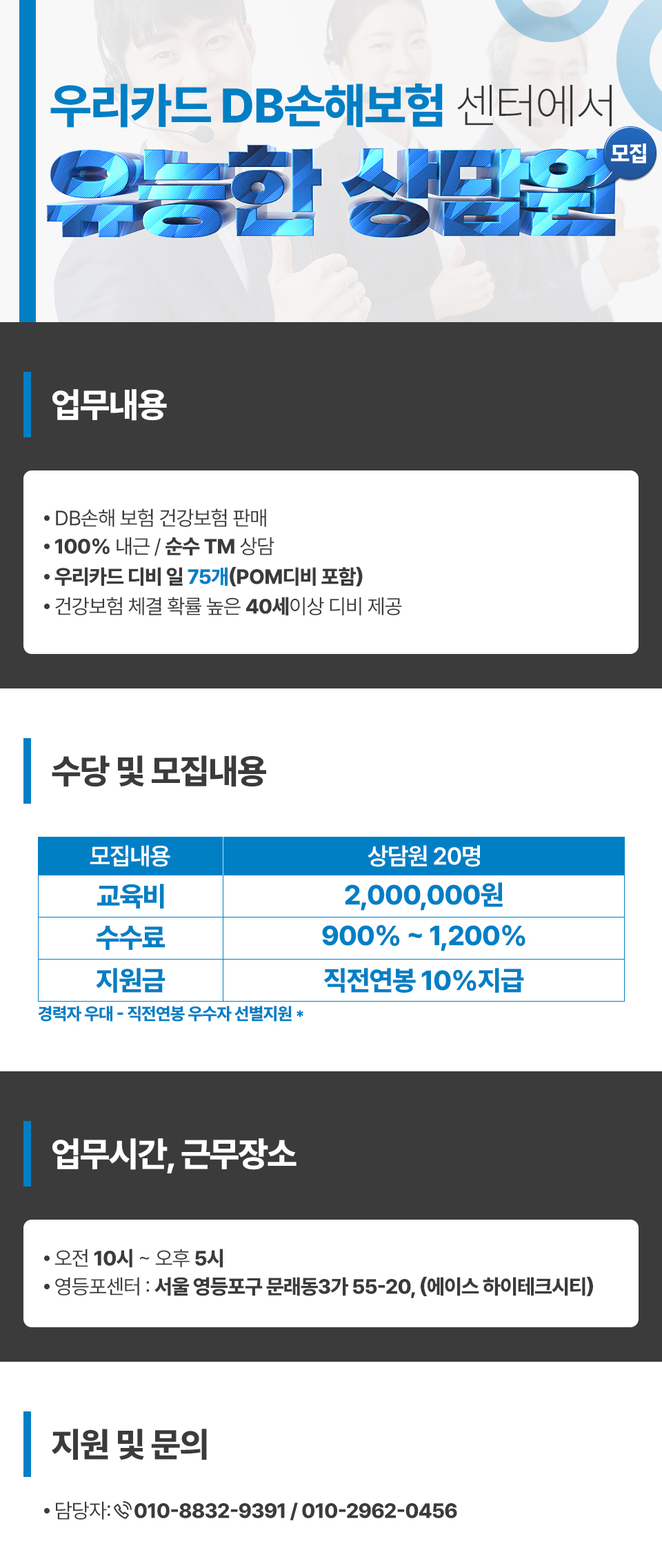 #우리카드 DB손해보험 센터 #교육비 200만 #수수료1200% #직전연봉 10%지원금 지급