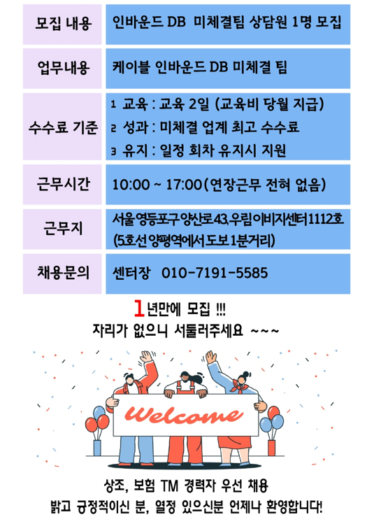 #교육비 지급 #높은 체결율DB 제공 #재택근무 #TM경력자 우대 #월400~600만 #인바운드