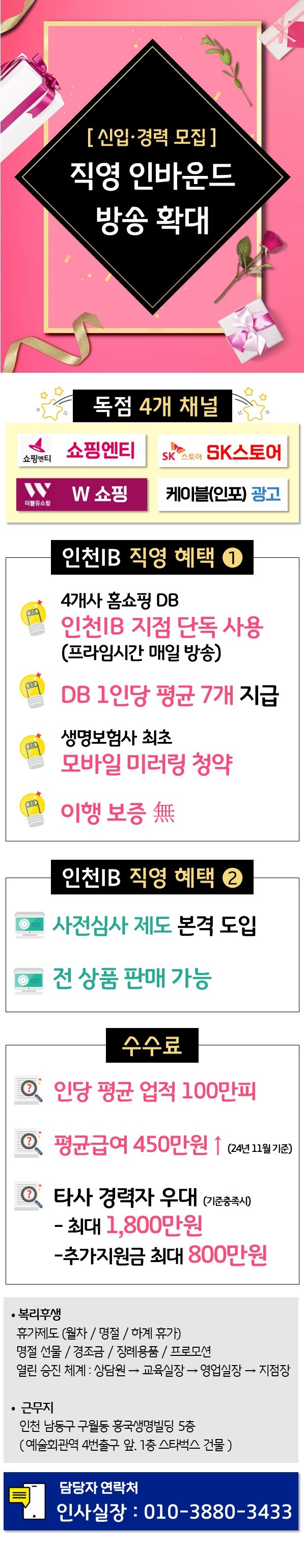 #4개사 홈쇼핑DB #평균 급여 450만 이상 #타사 경력자 우대 최대 1,800만 #추가지원금 800만 #명절선물