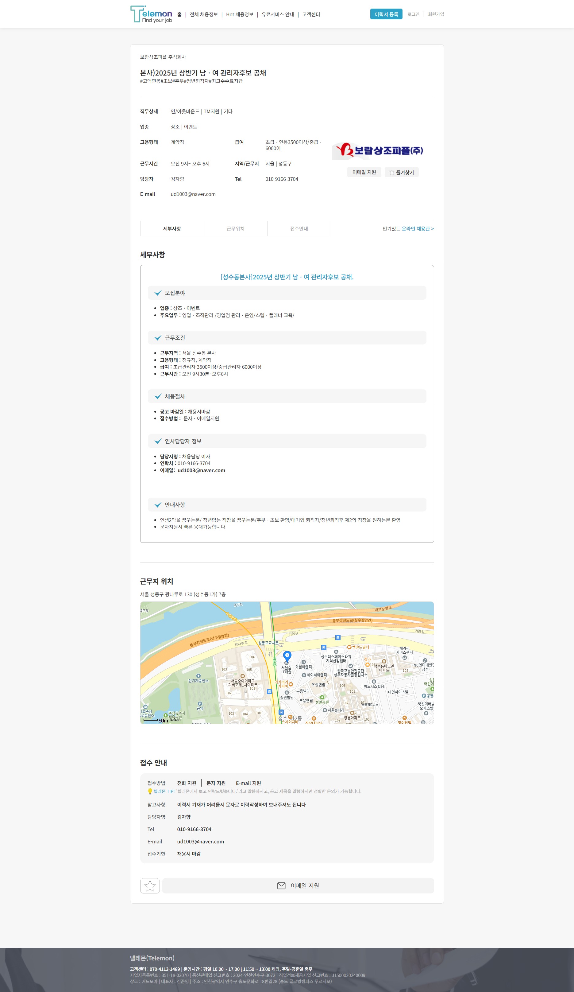 '텔레몬에서 보고 연락드렸습니다.'라고 말씀하시고, 공고 제목을 말씀하시면 정확한 문의가 가능합니다.